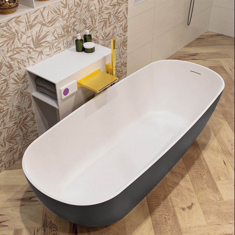 Mondiaz Vrijstaand bad Rock – 170x70cm – dark grey (donker grijs)/ talc (mat wit) – BK75341061