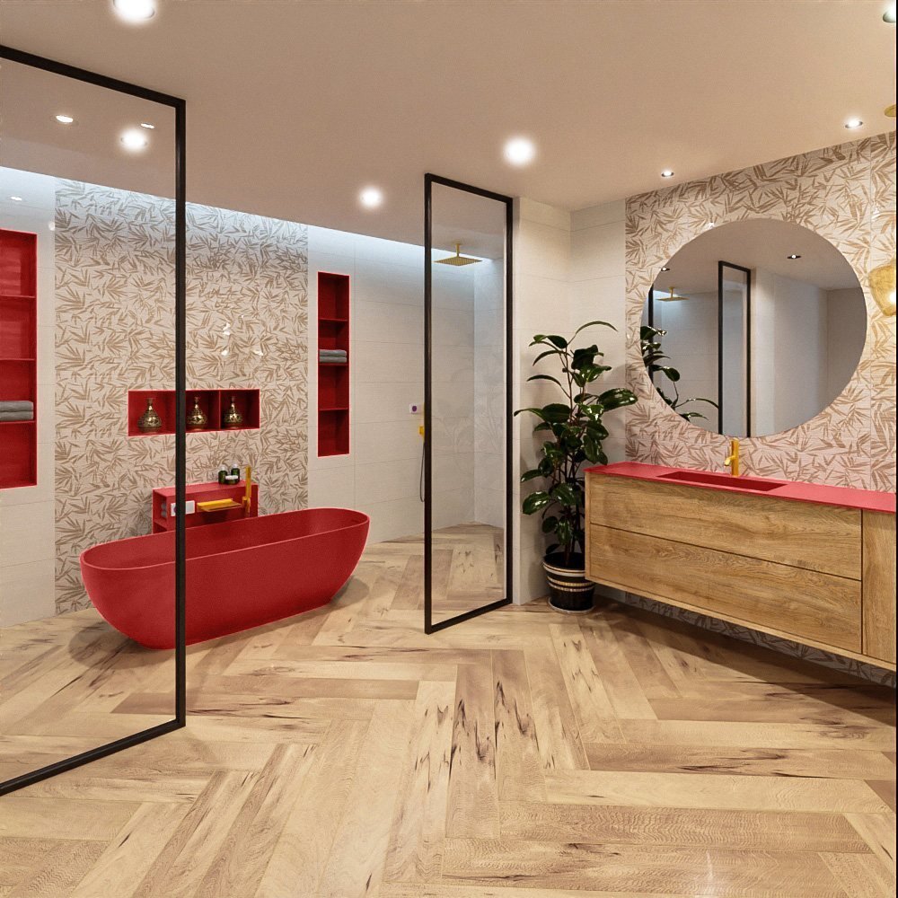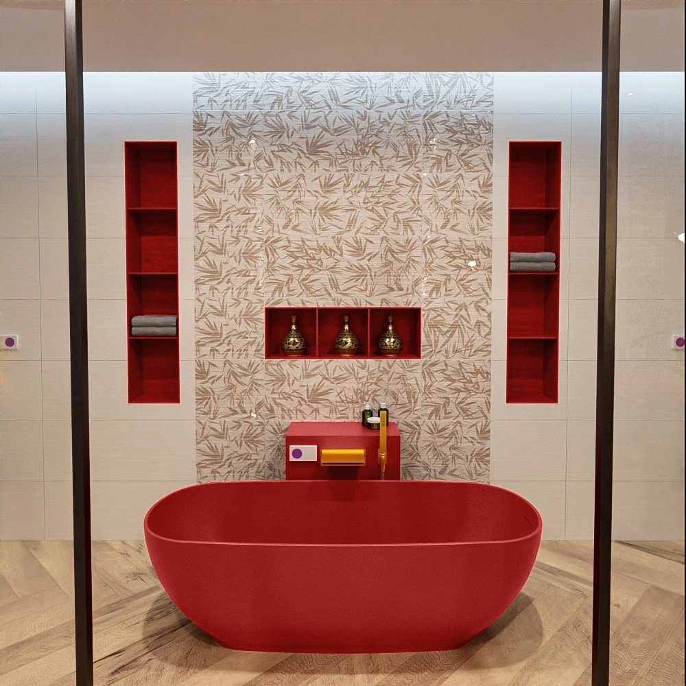 - De opvallende rode kleur maakt dit bad een echte blikvanger