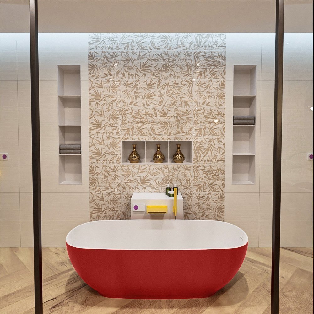 - De opvallende kleur fire (rood) voegt een vleugje drama toe aan je badkamer