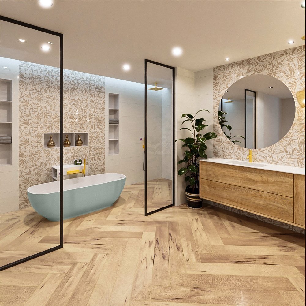 - De combinatie van licht pastel groen en mat wit geeft het bad een unieke en stijlvolle uitstraling