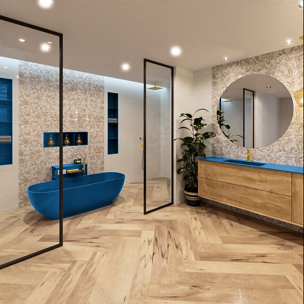 - Het vrijstaande bad dient als een luxe middelpunt in uw badkamer