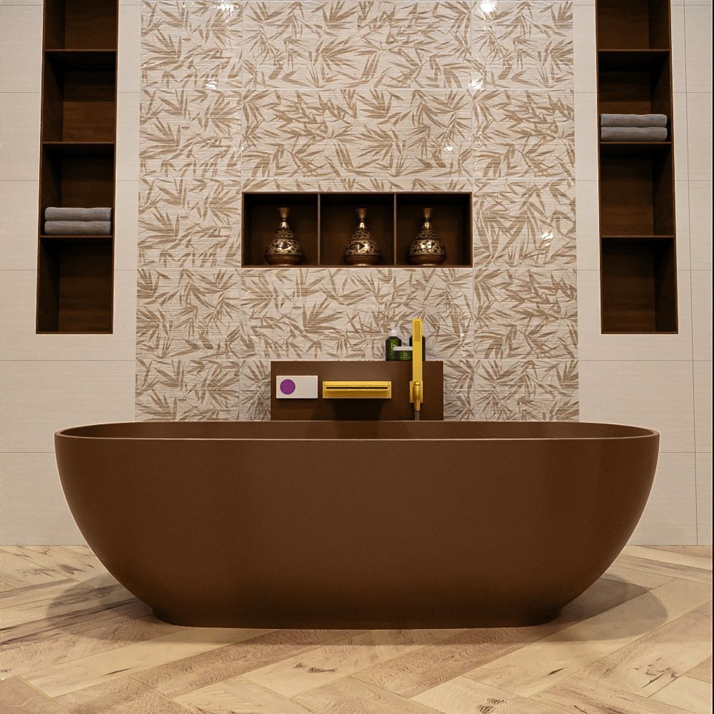 Creëer een luxueuze en ontspannende badervaring met het vrijstaande bad Rock. Dit prachtige bad is een stijlvolle aanvulling op elke badkamer, dankzij zijn unieke ontwerp en warme, rustieke bruin tint.