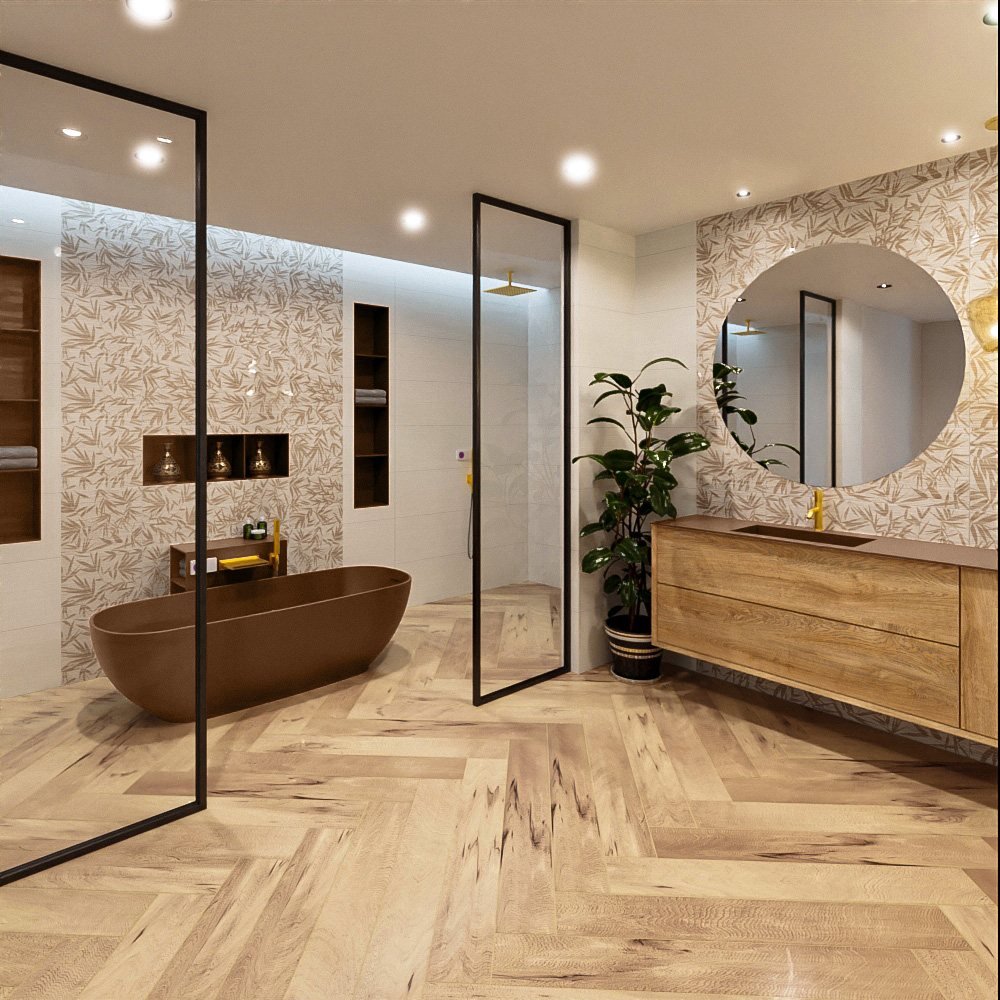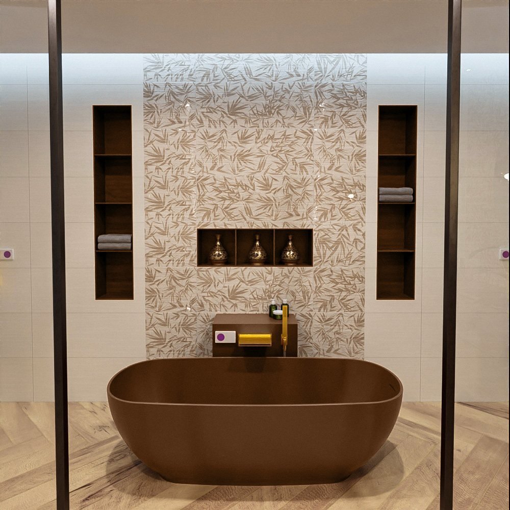 - De rustieke bruin tint voegt een warme en natuurlijke sfeer toe aan uw badkamer