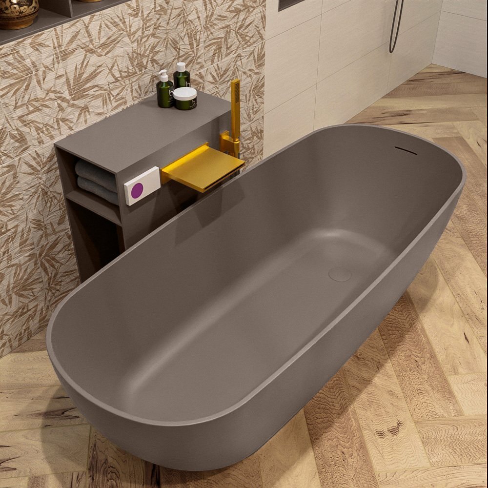 De smoke grijze tint van dit bad geeft het een unieke, moderne uitstraling die perfect past bij uw hedendaagse interieurstijl. Het vrijstaande ontwerp voegt een vleugje luxe en elegantie toe aan uw badkamer, waardoor het voelt als een privé-spa in uw eigen huis.