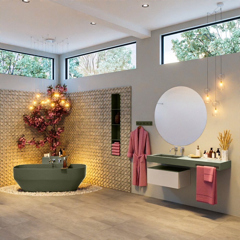 - Voeg een vleugje luxe toe aan uw badkamer met zijn stijlvolle army groene kleur