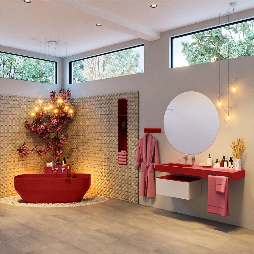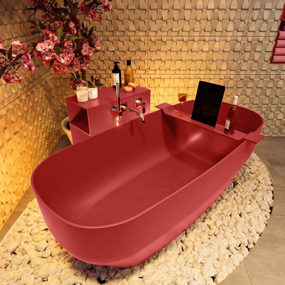Stap in de wereld van luxe en comfort met dit prachtige, vrijstaande bad. Het Mondiaz bad is een ware aanwinst voor uw badkamer, met zijn strakke lijnen en unieke, vurige roodtint die uw ruimte een levendige en stijlvolle touch geeft.
