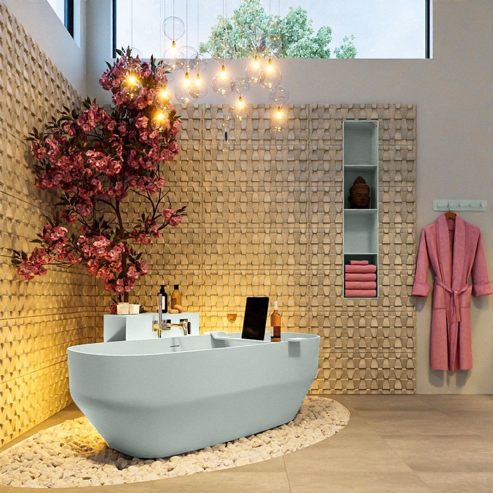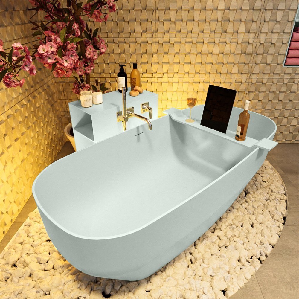 Maak van uw badkamer een luxe spa met het vrijstaande bad van topkwaliteit. Het stijlvolle en tijdloze ontwerp in licht pastel groen brengt een rustgevende en natuurlijke sfeer in uw badkamer. Het bad is gemaakt van Stone, een duurzaam en slijtvast materiaal dat jarenlang meegaat.