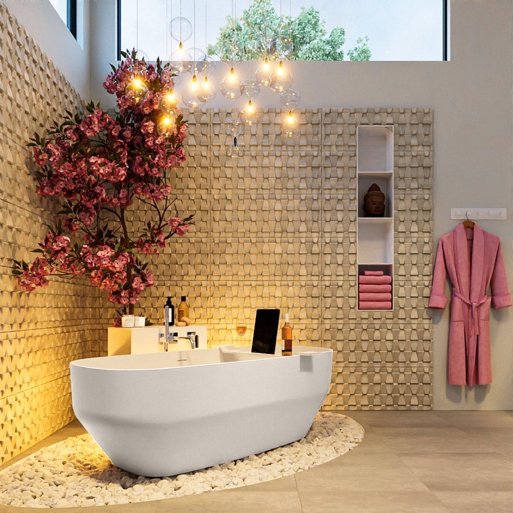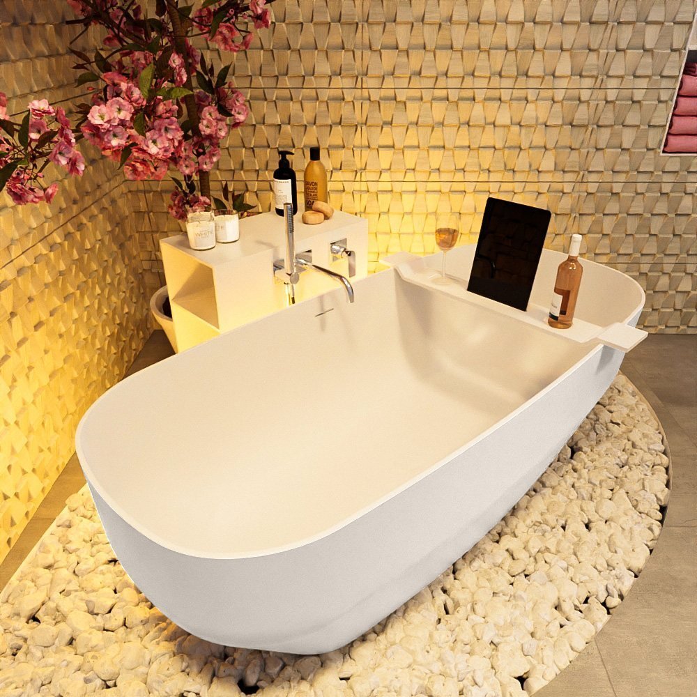 - Dit bad is vervaardigd uit Stone, een premium materiaal bekend om zijn duurzaamheid en prettige aanraking