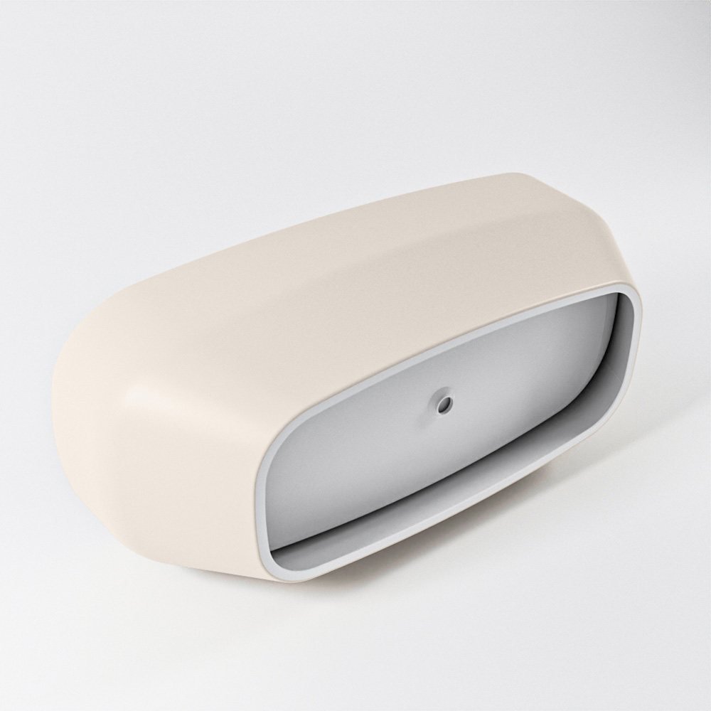 Dit bad is vervaardigd uit Stone , een hoogwaardig materiaal dat bekend staat om zijn duurzaamheid en aangename aanraking. Het is afgewerkt in een veelzijdige kleurstelling van linen (off white tint) en talc (mat wit) , wat resulteert in een stijlvolle look die past in elke badkamerinterieur.