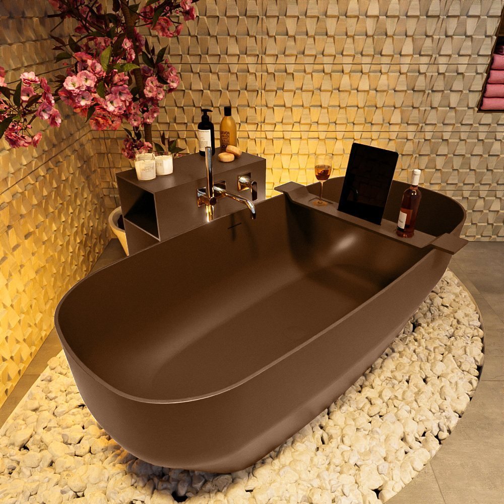 Dit bad is niet alleen functioneel, maar ook een stijlvolle toevoeging aan uw badkamer. De bruine tint geeft een rustgevend en warm gevoel, waardoor uw badkamer een oase van rust wordt. Het vrijstaande ontwerp geeft uw badkamer een moderne en luxe uitstraling.