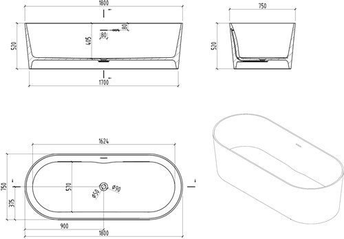 De afmetingen van het bad zijn 180x75cm, ruim genoeg voor een comfortabele en ontspannende badervaring. Het is ruim, maar toch compact genoeg om in de meeste badkamers te passen. Of u nu de voorkeur geeft aan een snel, verfrissend bad of een lang, weelderig bad, dit bad voldoet aan al uw behoeften.