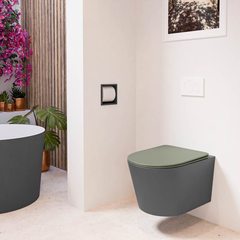 Het toilet is vervaardigd van hoogwaardig keramiek, bekend om zijn duurzaamheid en weerstand tegen vlekken, krassen en chipping. De Dark Grey afwerking geeft het een strakke, moderne look die perfect past in elke hedendaagse badkamer.