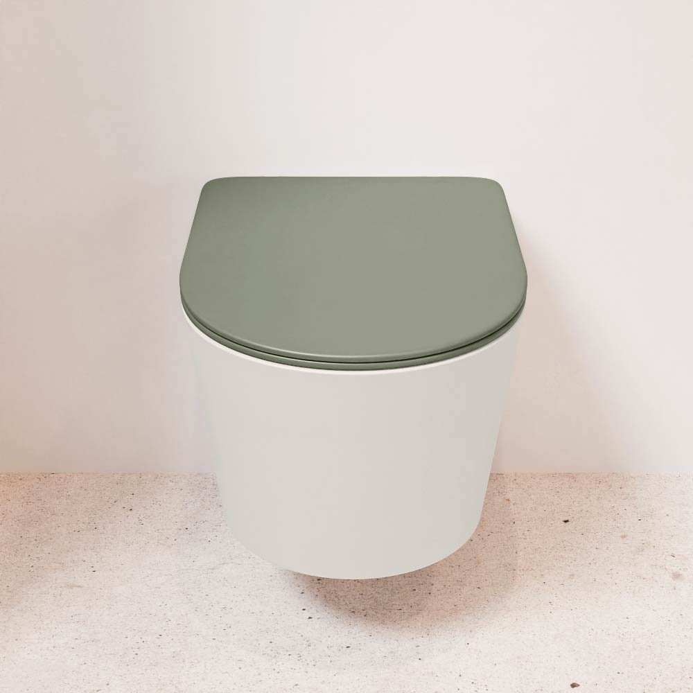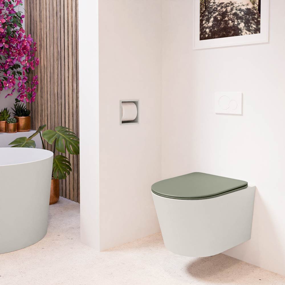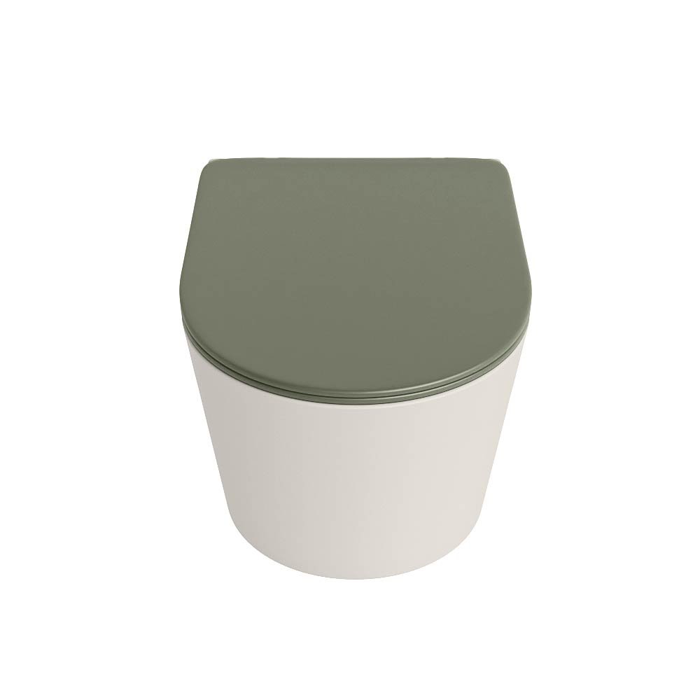 De Mondiaz Lavie wandcloset heeft een strak, randloos ontwerp dat niet alleen modern en stijlvol is, maar ook eenvoudig te reinigen. Geen zorgen meer over vuil en bacteriën die zich ophopen in moeilijk bereikbare gebieden. Bovendien wordt de closet geleverd met een toiletzitting in een opvallende ‘army’ stijl, wat een uniek designelement toevoegt aan uw ruimte.