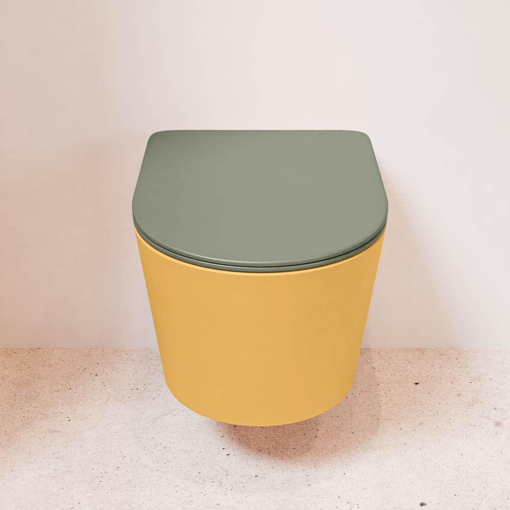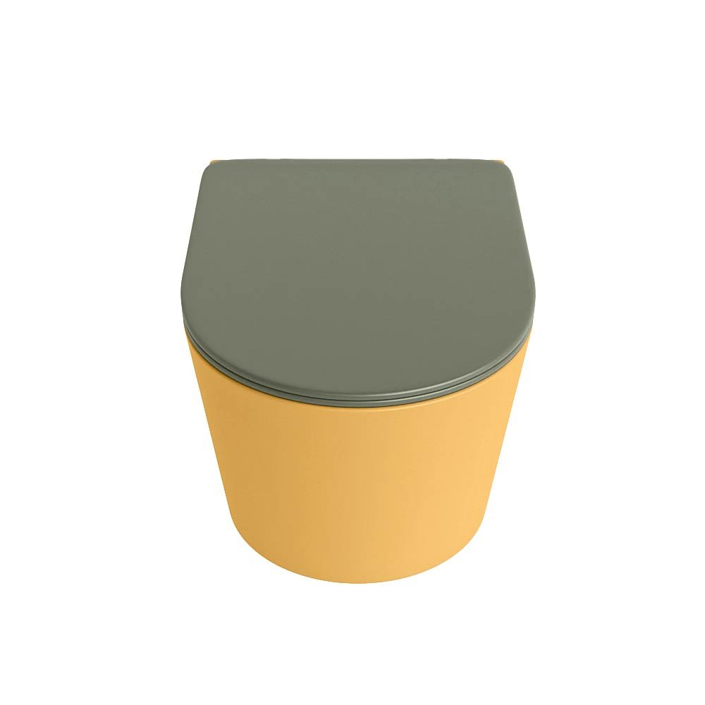 Mondiaz Wandcloset Mondiaz Lavie – Zonder spoelrand – Incl.Toiletzitting-Army – Keramiek – Ocher (geel) – LAVIEsetOchArm