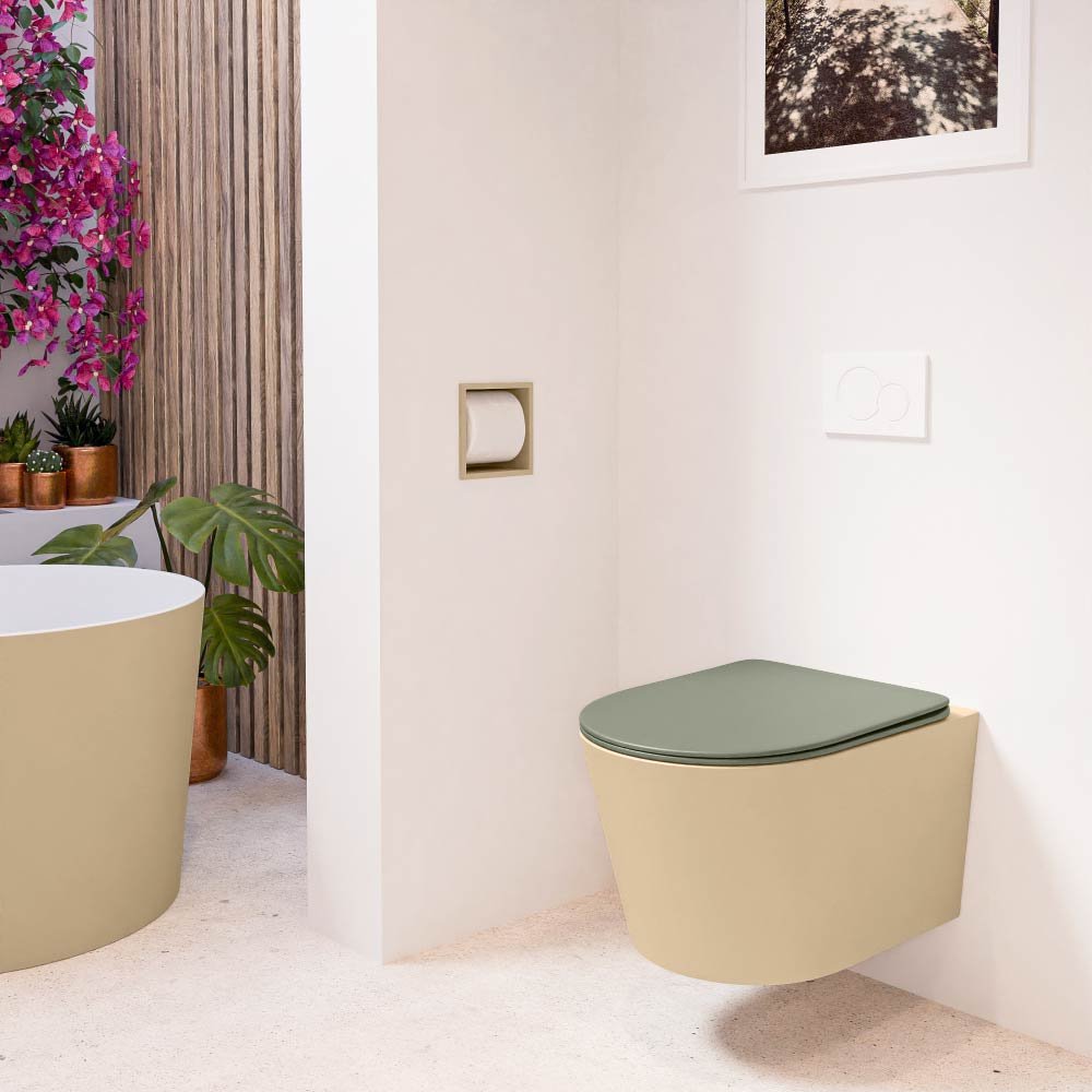 Mondiaz Wandcloset Mondiaz Lavie – Zonder spoelrand – Incl.Toiletzitting-Army – Keramiek – Sand – LAVIEsetSanArm