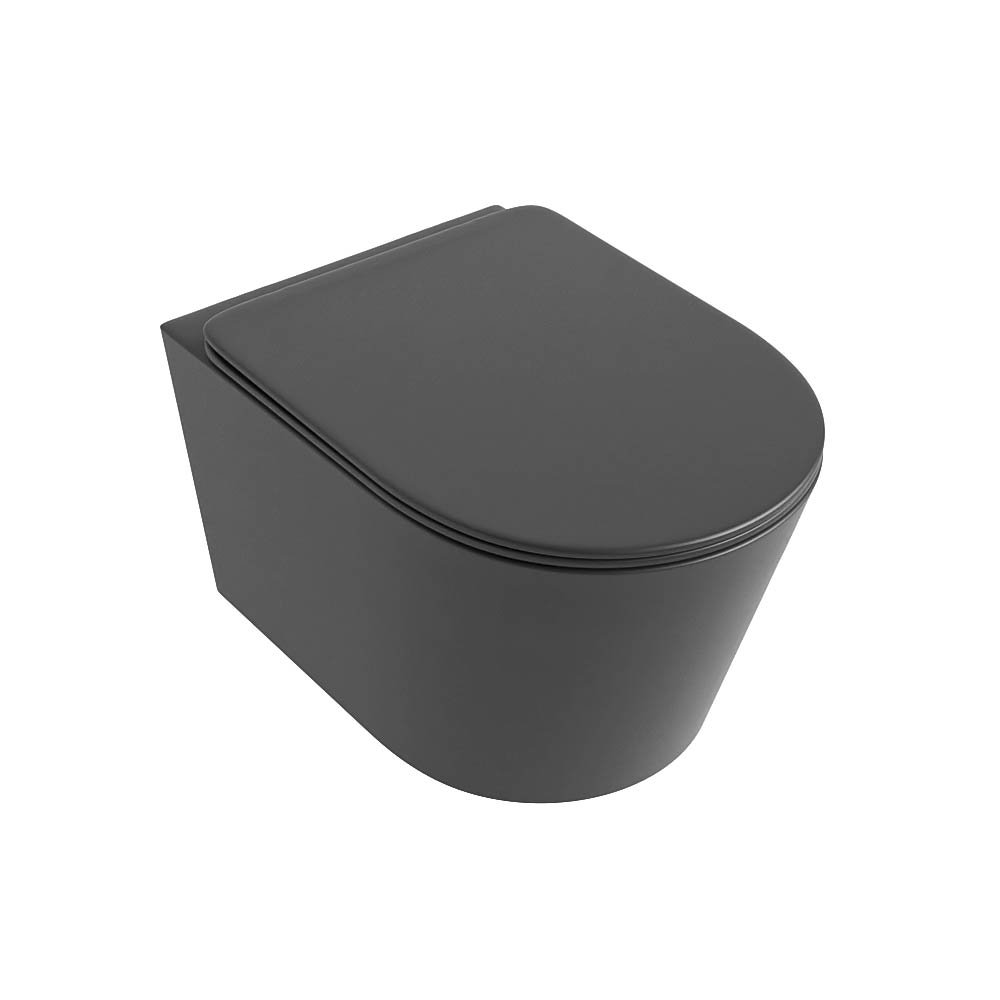 Mondiaz Wandcloset Mondiaz Lavie – Zonder spoelrand – Incl.Toiletzitting-Dark Grey – Keramiek – Dark Grey – LAVIEsetDgrDgr