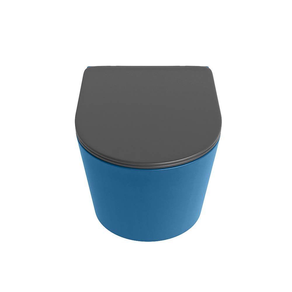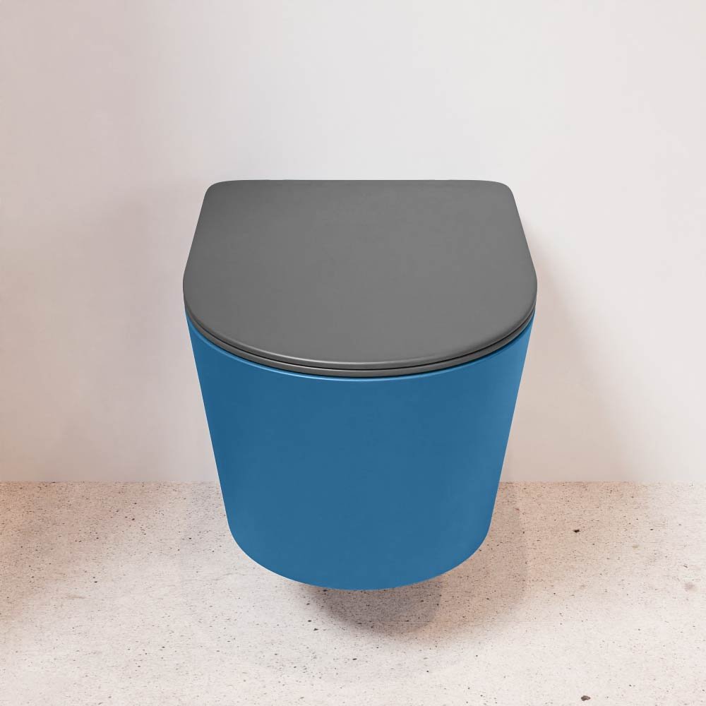 De donkergrijze kleur van het toilet geeft uw badkamer een moderne en stijlvolle uitstraling. Het closet is gemaakt van keramiek, een materiaal dat bekend staat om zijn duurzaamheid en het gemak waarmee het schoon te houden is. Het keramiek is afgewerkt in een unieke jeans blauwe kleur, waarmee u zeker indruk maakt op uw gasten.