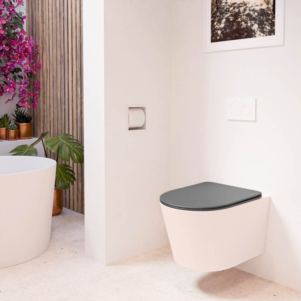 Het merk begrijpt de behoefte aan een toilet dat niet alleen goed werkt, maar er ook goed uitziet. Daarom hebben we deze wandcloset ontworpen met een donkergrijze afwerking en een unieke rosee tint. Deze combinatie zorgt voor een opvallend design dat zeker opvalt in elke badkamer.