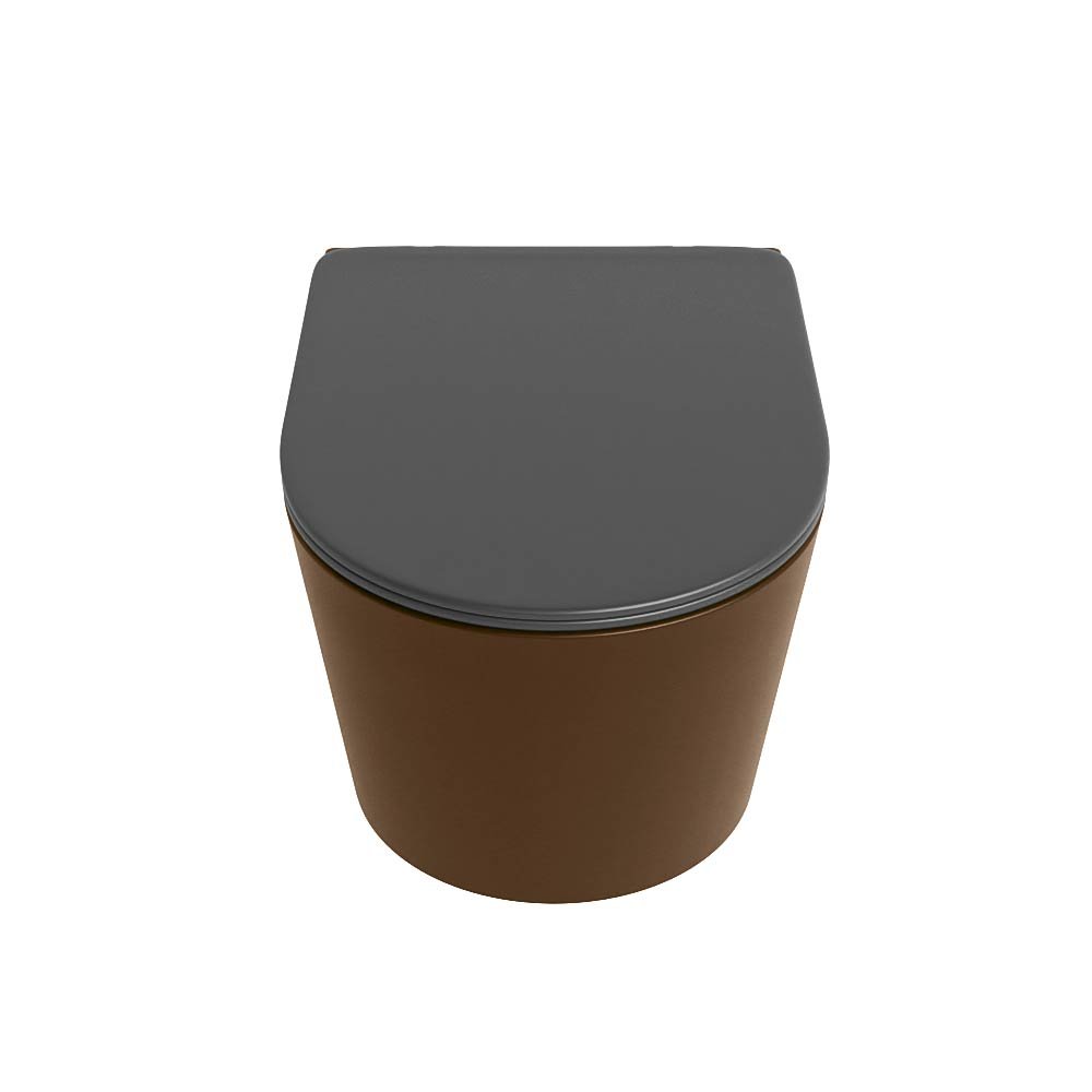 Mondiaz Wandcloset Mondiaz Lavie – Zonder spoelrand – Incl.Toiletzitting-Dark Grey – Keramiek – Rust (bruin) – LAVIEsetRusDgr