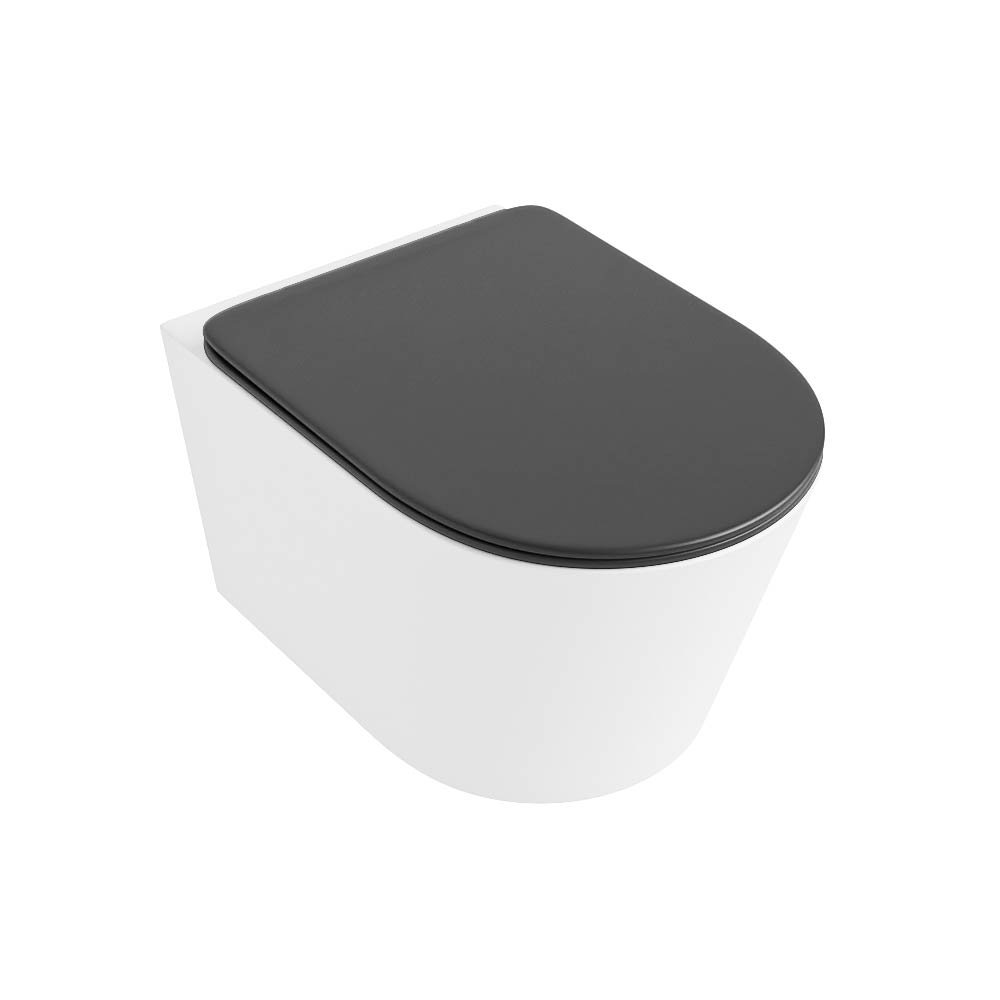 Mondiaz Wandcloset Mondiaz Lavie – Zonder spoelrand – Incl.Toiletzitting-Dark Grey – Keramiek – Talc (wit mat) – LAVIEsetTalDgr
