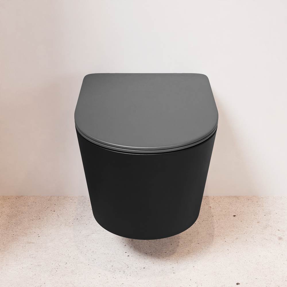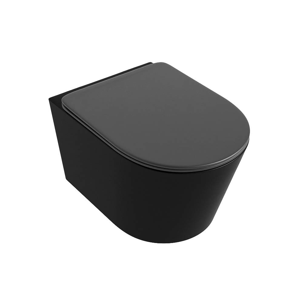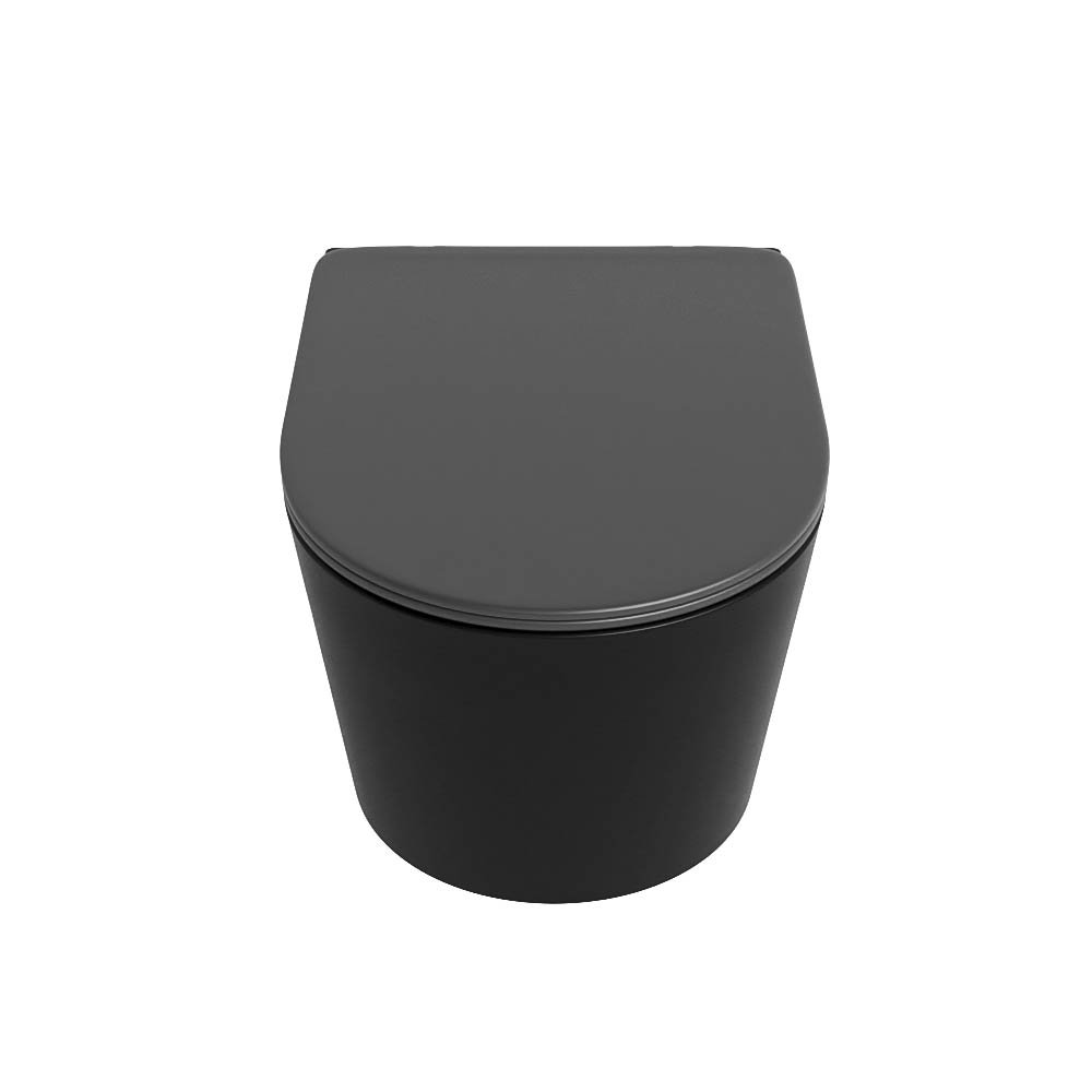 Mondiaz Wandcloset Mondiaz Lavie – Zonder spoelrand – Incl.Toiletzitting-Dark Grey – Keramiek – Urban (zwart mat) – LAVIEsetUrbDgr