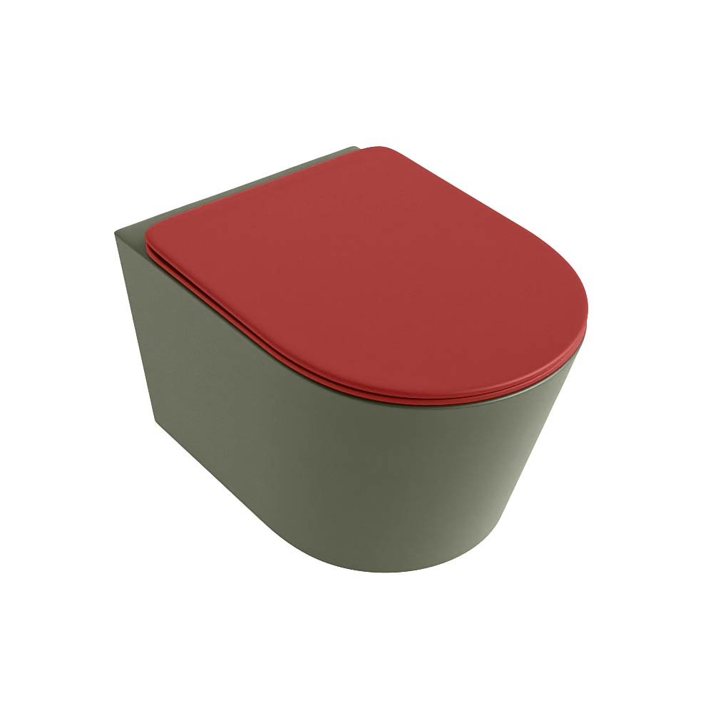 Mondiaz Wandcloset Mondiaz Lavie – Zonder spoelrand – Incl.Toiletzitting-Fire – Keramiek – Army (groen) – LAVIEsetArmFir