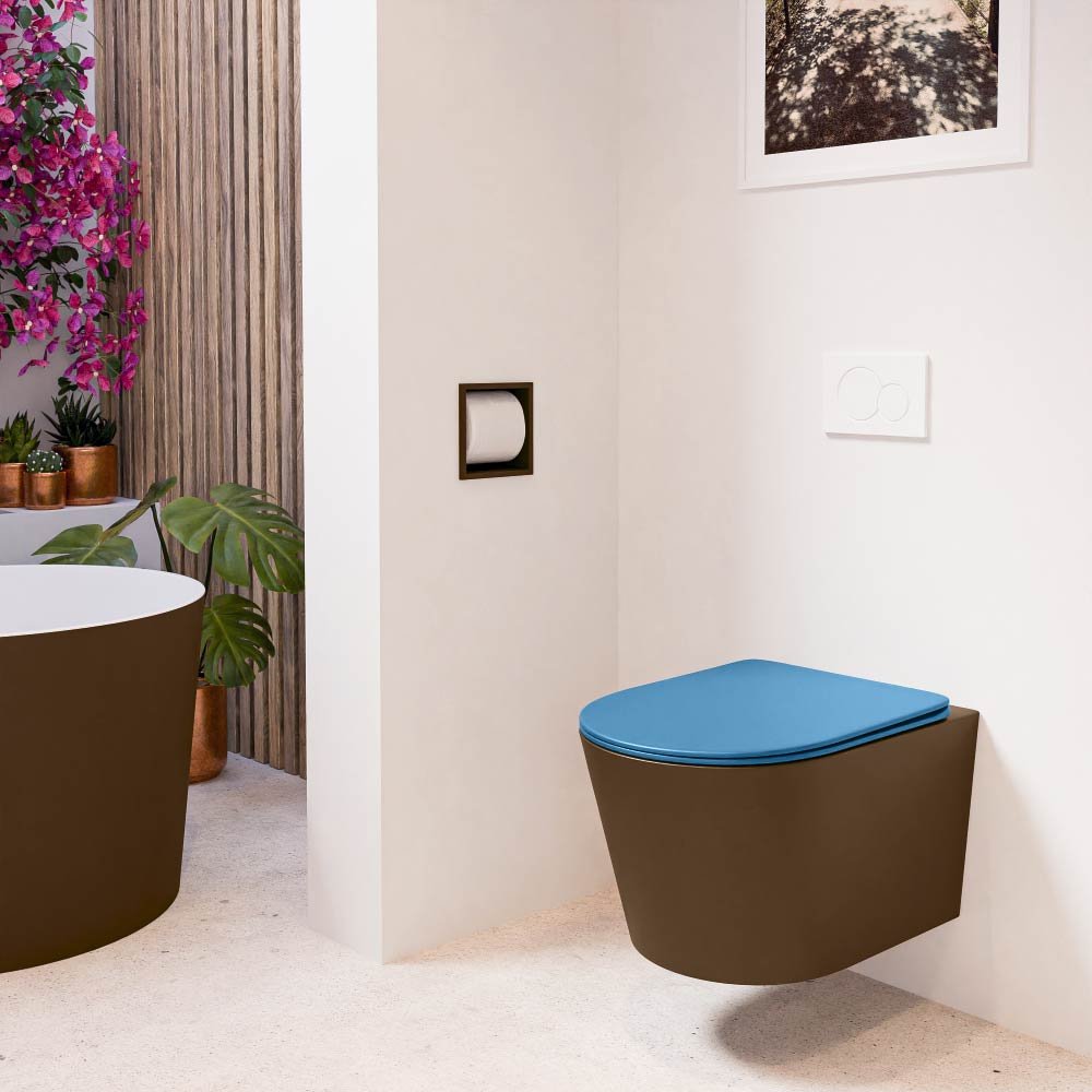 Dit wandcloset heeft een modern ontwerp dat naadloos in elke badkamerinrichting past. De rustige bruine tint geeft het een warme en uitnodigende uitstraling, terwijl de unieke jeanslook op de toiletzitting een speelse touch toevoegt. Bovendien is het gemaakt van kwalitatief keramiek, een materiaal dat bekend staat om zijn duurzaamheid en lange levensduur.