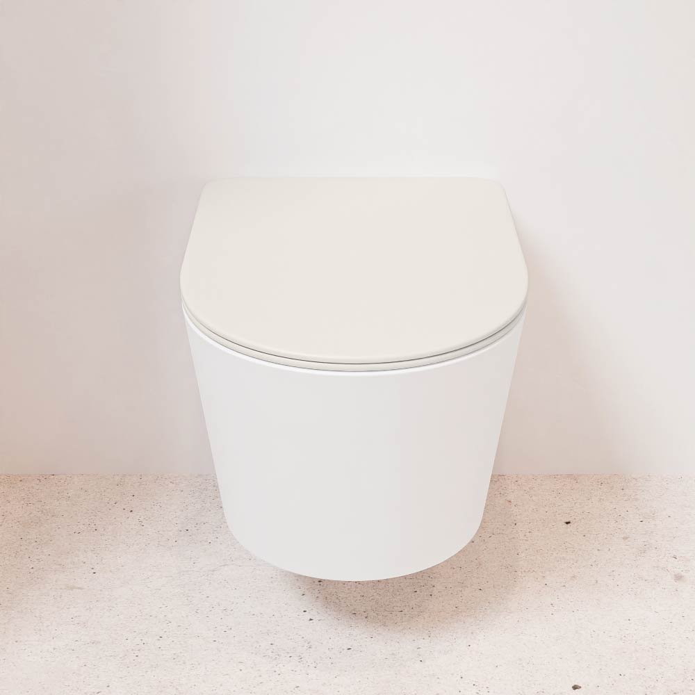 Mondiaz Wandcloset Mondiaz Lavie – Zonder spoelrand – Incl.Toiletzitting-Linen – Keramiek – Talc (wit mat) – LAVIEsetTalLin