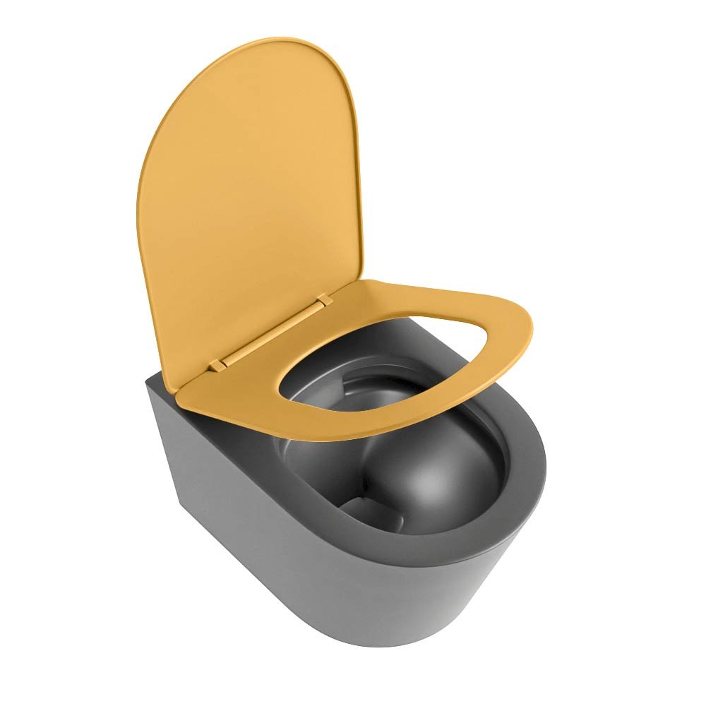 Mondiaz Wandcloset Mondiaz Lavie – Zonder spoelrand – Incl.Toiletzitting-Ocher – Keramiek – Dark Grey – LAVIEsetDgrOch