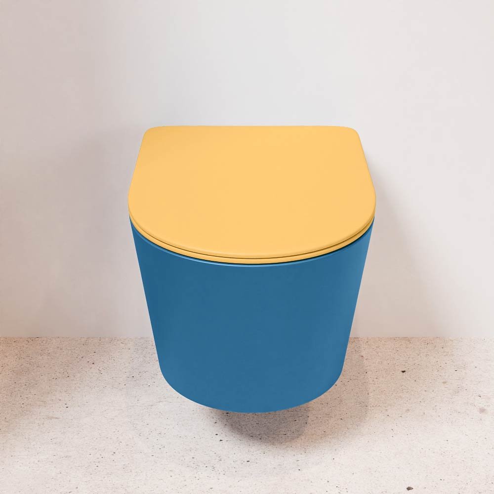 Mondiaz Wandcloset Mondiaz Lavie – Zonder spoelrand – Incl.Toiletzitting-Ocher – Keramiek – Jeans (blauw) – LAVIEsetJeaOch