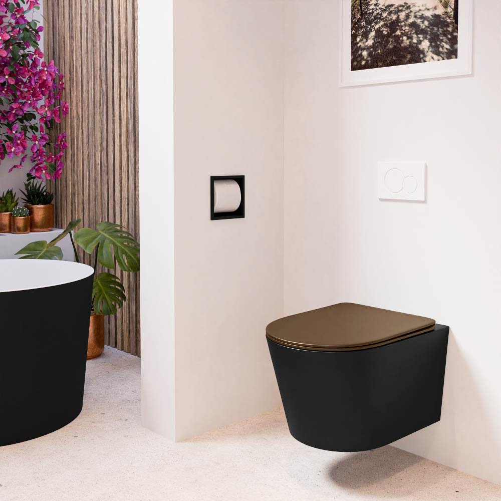 • Het matzwarte ontwerp geeft het toilet een moderne en stedelijke uitstraling die perfect past in elke badkamer.
