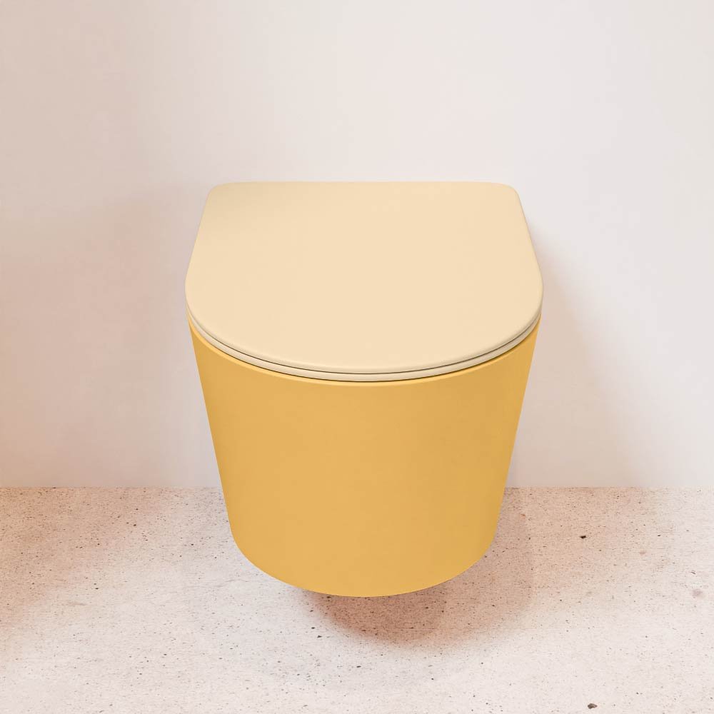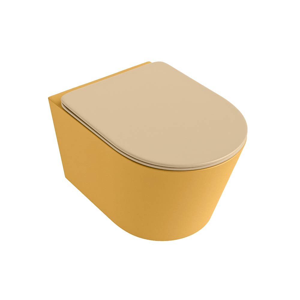 Mondiaz Wandcloset Mondiaz Lavie – Zonder spoelrand – Incl.Toiletzitting-Sand – Keramiek – Ocher (geel) – LAVIEsetOchSan