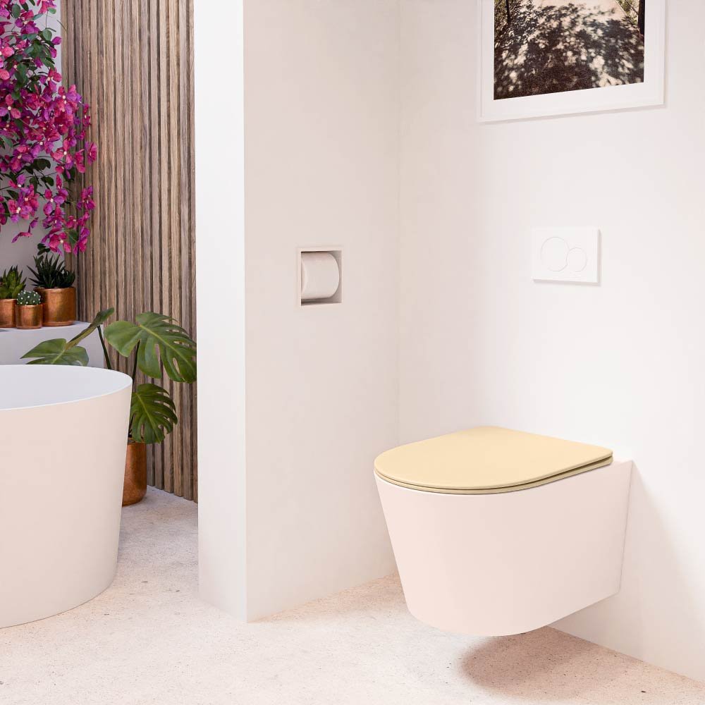 - De sand gekleurde toiletzitting voegt een subtiele, maar stijlvolle touch toe aan uw badkamerinrichting.