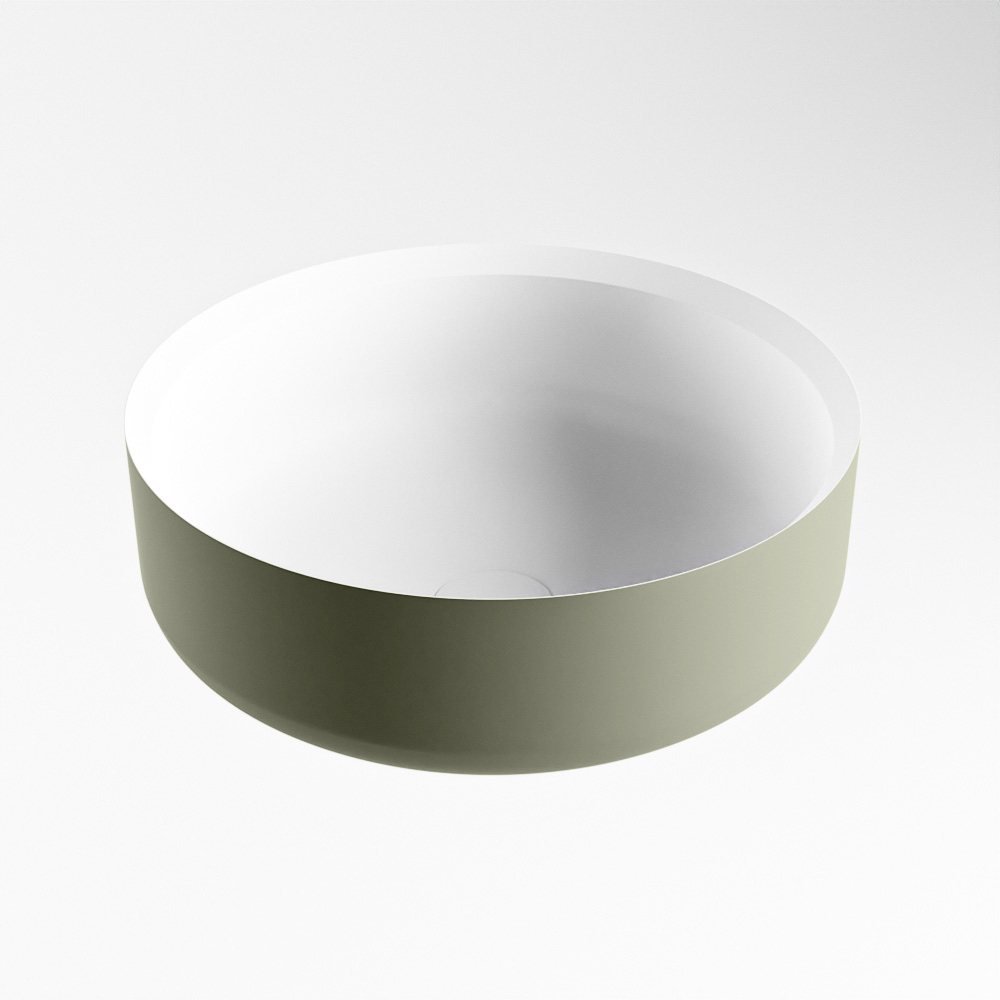 Mondiaz Waskom Coss – solid surface – 36cm – army (groen)/ talc (mat wit) – M49901ArmyTalc