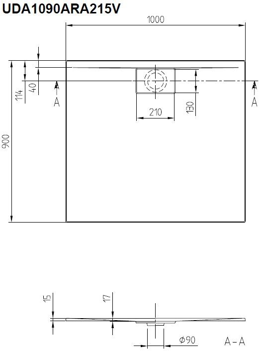 Villeroy & Boch Architectura Metalrim kunststof douchebak – acryl rechthoekig 100x90x4.8cm – mat wit – uda1090ara248v-rw