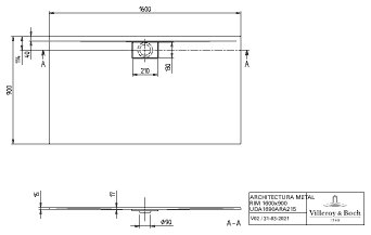 Villeroy & Boch Architectura Metalrim kunststof douchebak – acryl rechthoekig 160x90x1.5cm – mat wit – uda1690ara215v-rw