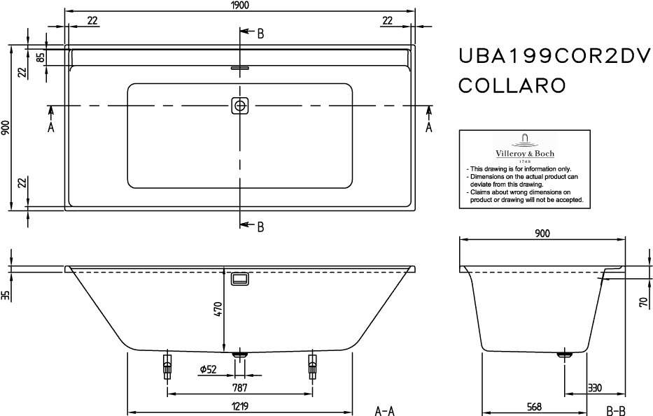- Het bad is ontworpen door Villeroy & Boch, een toonaangevend merk in de sanitairbranche.
