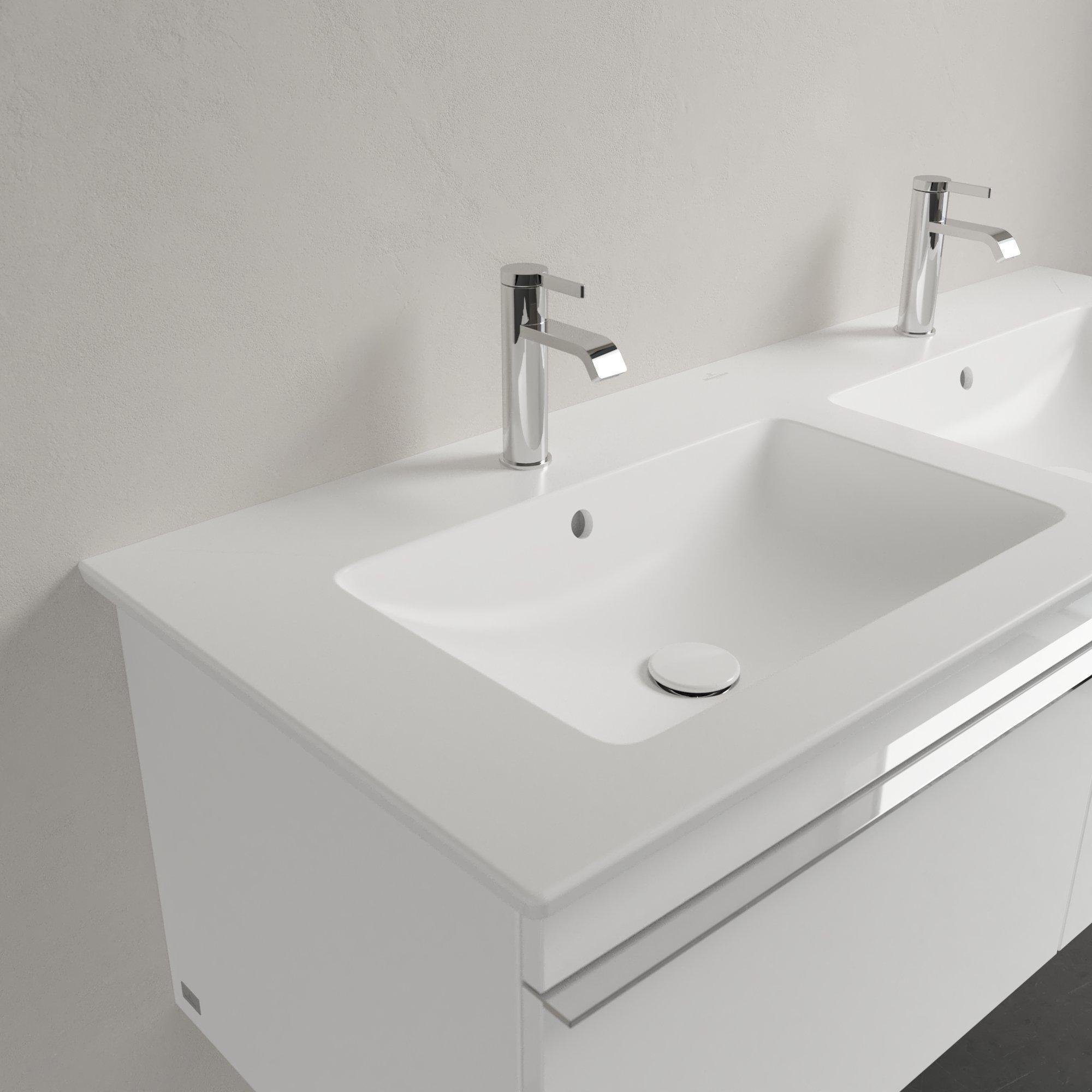 Villeroy & Boch Venticello Meubelwastafel – dubbel – 2 kraangaten doorgestoken – 130x50cm – overloop Ceramic+ – stone white – 4111DLRW