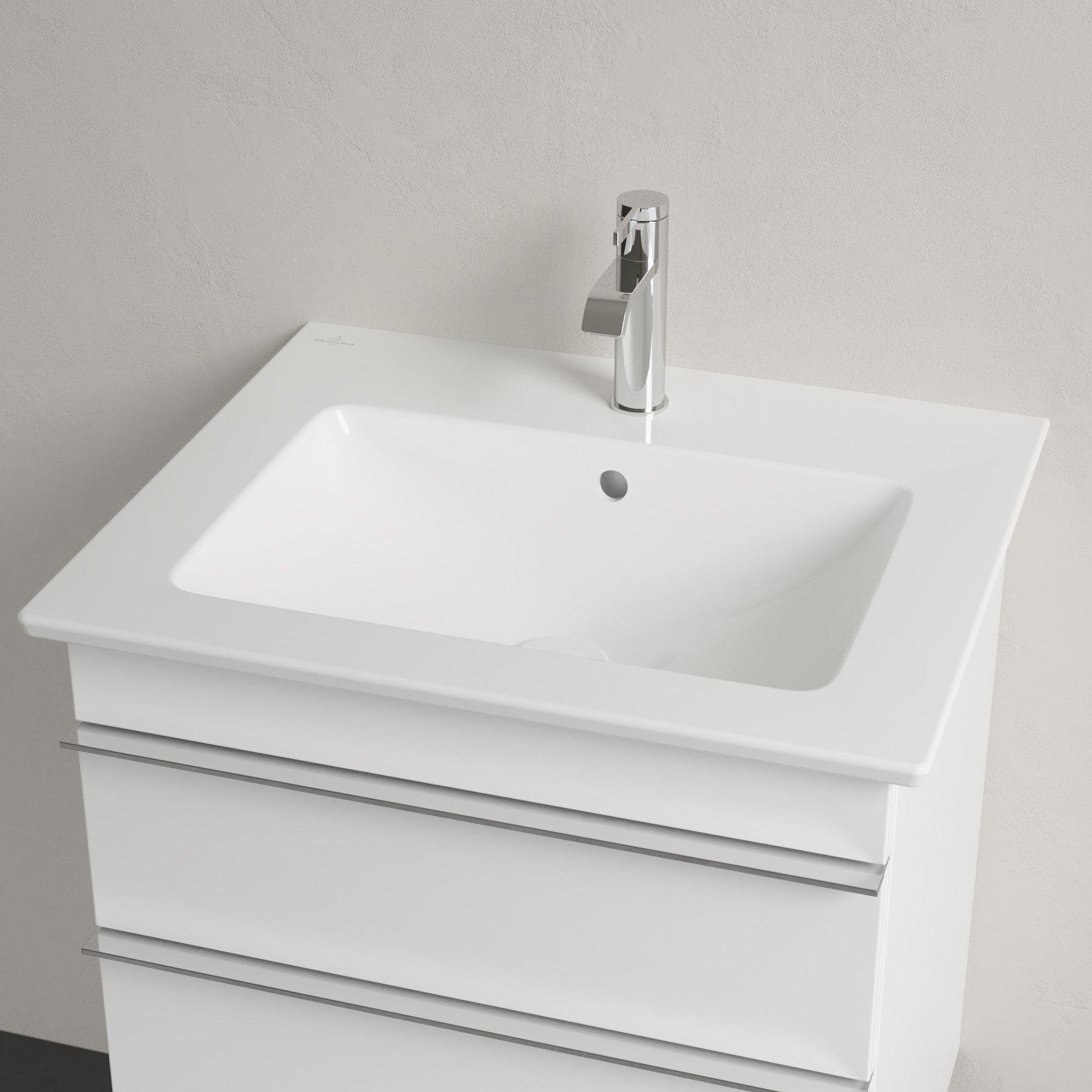 Villeroy & Boch Venticello wastafel – met 1 kraangat 60x50cm – (geschikt voor 3 kraangaten) met overloop wit – 41246001