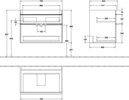 Villeroy & Boch Venticello wastafelonderkast – 75.3x59cm – 2x lade glossy wit – a92501dh